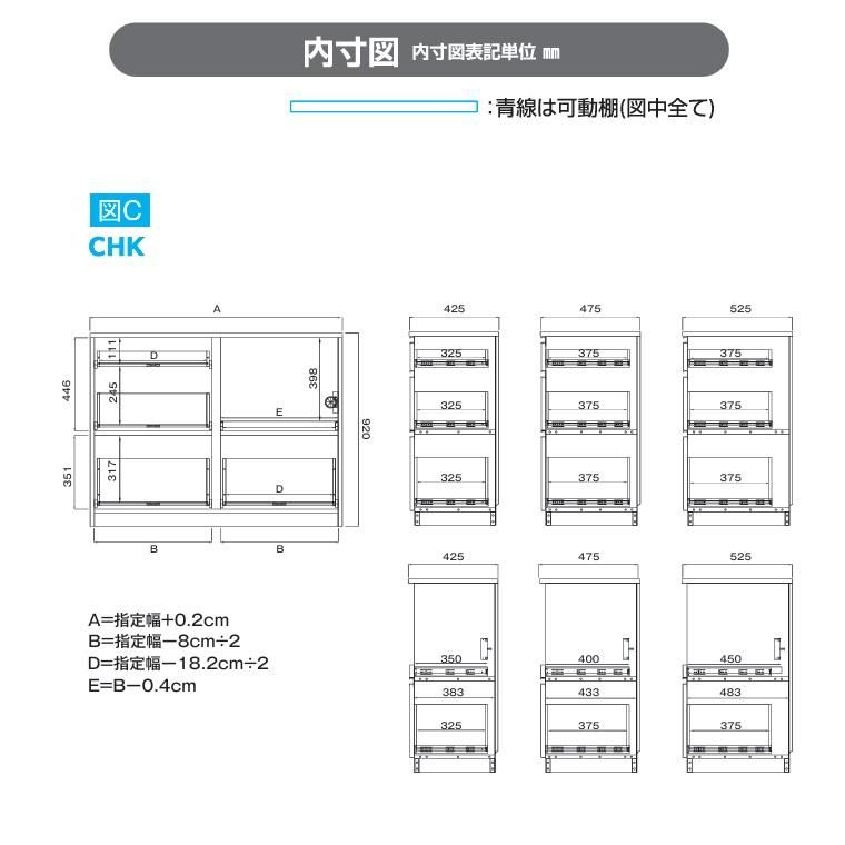 ●CDK/CHD/CHKレンジすきまくんは幅1cm対応! 奥行42/47/52cmの3タイプ高さは92cm固定になります。